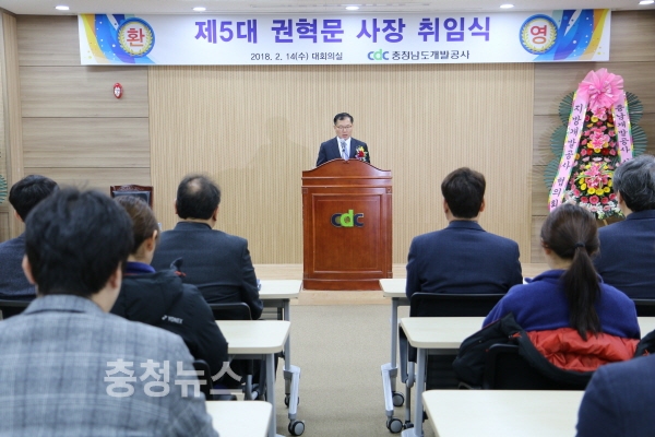 충남개발공사 제5대 권혁문 사장 취임 인사말 모습