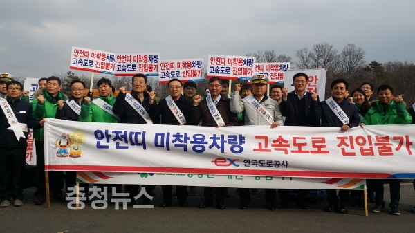 교통안전캠페인에 참석한 한국도로공사 박상활본부장 등 유관기관장들이 기념촬영을 하고있다