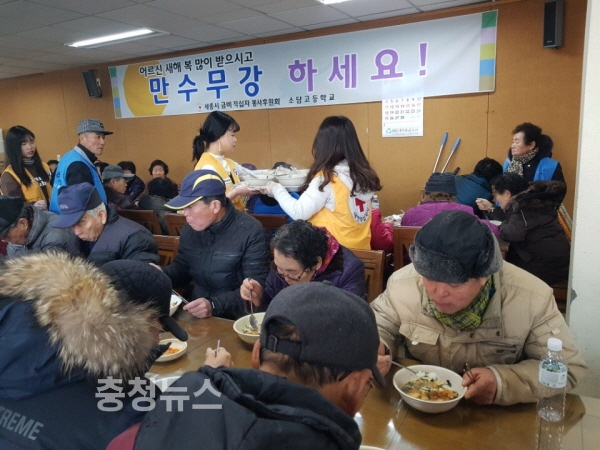 세종소담고등학교 학생들과 후원회는 지난 14일 세종시 대한노인회관에서 전달된 기부금으로 명절을 맞아 지역 어르신들에게 떡국을 직접 만들어 대접하는 ‘설맞이 떡국 봉사’를 하며 뜻깊은 시간을 보냈다.