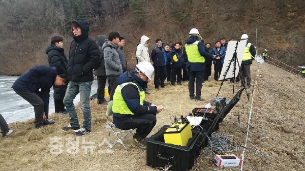 한국농어촌공사 기술안전품질원(원장 박종호)은 20일 충북 청주시 미원면 중리저수지에서 공사 직원 및 충청북도 지자체 안전담당 공무원 등 관계자 100여명이 참석한 가운데 정밀안전진단 시연회를 개최했다.