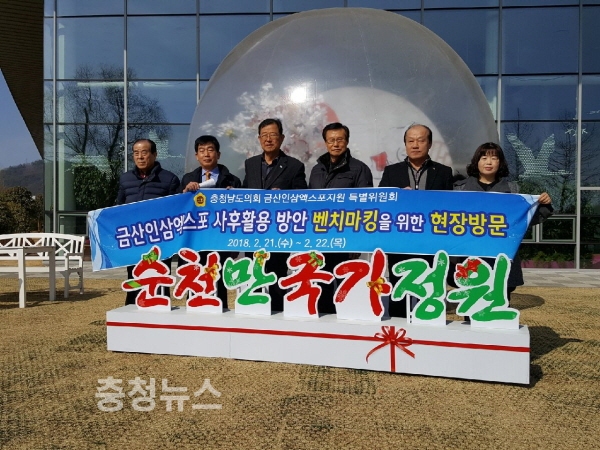 충남도의회가 지난해 9월 성황리 막을 내린 금산세계인삼엑스포 시설물에 대한 효율적인 사후 관리를 위한 벤치마킹에 나섰다.