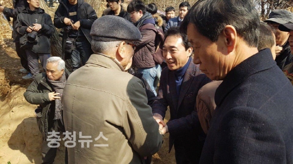 박 예비후보는 22일 충남 아산시 배방읍 중리에서 개최된 한국전쟁기 민간인학살 유해 발굴 공동 조사단의 ‘제5차 유해 발굴 조사 개토제’에 참석했다.