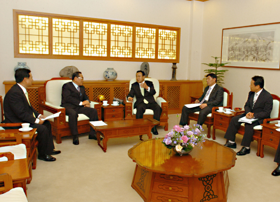 이완구 충청남도 지사는 (5. 28일)지역건설산업 활성화의 지속적인 추진방안을 모색하고 그간의 성과에 대한 의견을 청취하고자 박성배 대한건설협회 충청남도 회장, 박상희 전문건설협회 충청남도 회장, 황광연 설비건설협회 대전충남도회장과 전병욱 건설교통국장이 참석한 가운데 간담회의를 가졌다.