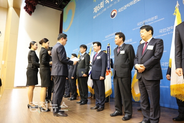 고충민원 처리실태 평가 최우수기관 수상 모습