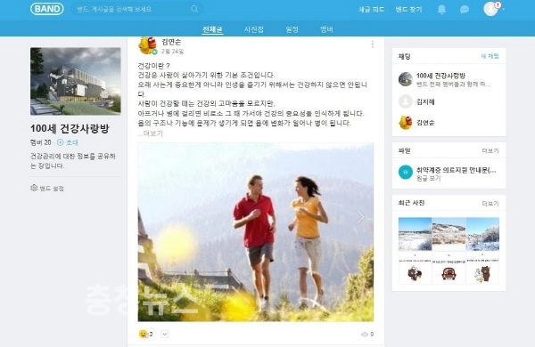 밴드 이름은 ‘100세 건강사랑방’으로 지금까지 건강한 척추를 만드는 10가지 방법, 건강박수, 건강이란?, 건강검진 안내, 한국인 대사증후군, 취약계층 의료지원사업 안내 등의 정보를 제공하고 있다.