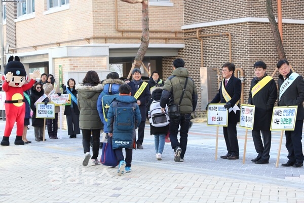 세종시교육청 직원, 등굣길 안내 및 교통안전 지도 실시
