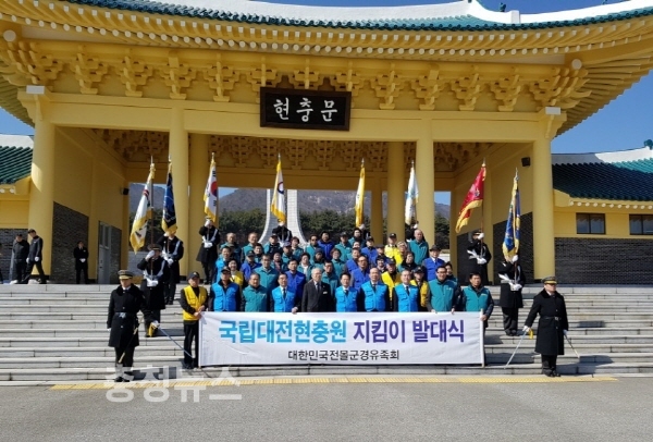 대한민국전몰군경유족회(회장 최해근)은 2일 대전, 충남, 충북 회원 60명이 참석한 가운데 국립대전현충원에서 '2018년도 국립대전현충원 지킴이 발대식'을 개최했다.