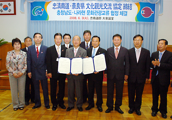 충남도는 3일 도청 대회의실에서 이완구 도지사와 나라현 지사 아라이 쇼고(荒井 正吾) 등 관계자 100명이 참석한 가운데 ‘문화관광 교류협정서’를 체결했다.