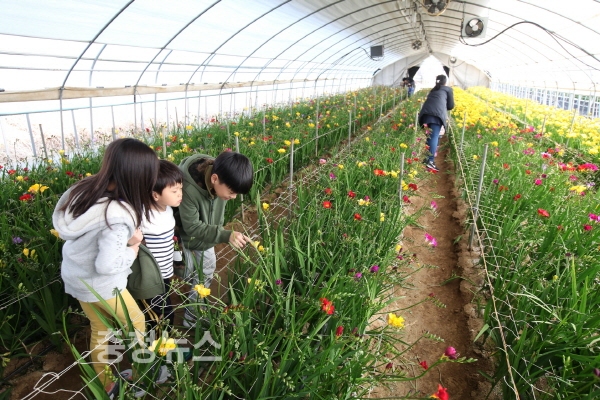 봄의 전령사 프리지어와 함께 봄 향기를 만끽할 수 있는 체험 프로그램을 당진 화훼농가들이 선보여 눈길을 끌고 있다.