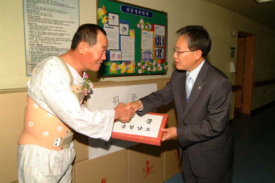 또 고수환(79세)씨 등이 입원해 있는 병실을 직접 방문하여 입원환자들에게 “여러분의 숭고한 희생이 있었기에 오늘 우리가 있을 수 있다” 면서 “빨리 쾌차하여 사회에 더 많은 봉사를 할 수 있기를 기대한다” 며 격려했다.