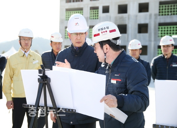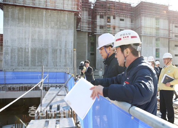 이 시장은 건설현장을 둘러보며 공사추진현황을 청취했으며, 근로자들을 격려하고 작업 시 각별히 주의할 것을 당부했다.