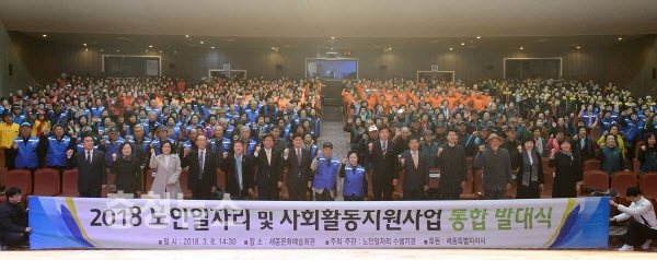세종시 노인일자리 사업을 수행하는 대한노인회세종시지회 등 8개 기관은 8일 세종문화예술회관에서 ‘노인일자리 및 사회활동지원사업 통합발대식’을 가졌다.