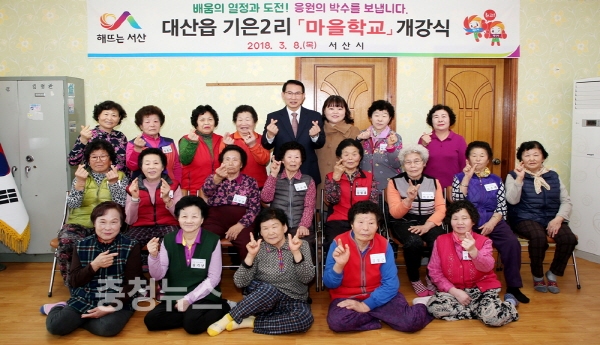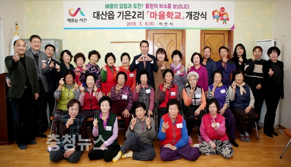 충남 서산시는 8일 배움의 기회를 놓친 17명의 어르신들 위해 대산읍 기은2리 마을회관에서 ‘마을학교’ 를 개강했다.