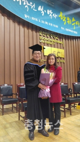 충남 아산시청 소속 공무원이 어려운 여건 속에서도 부단한 노력으로 순천향대학교에서 박사학위를 받아 주위의 화제가 되고 있다.
