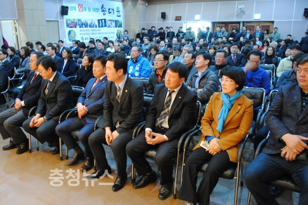 송대윤 대전시의원(유성1, 민주당)이 10일 유성문화원에서 의정보고회를 연 가운데 송 의원에 대한 칭찬 릴레이가 펼쳐졌다.