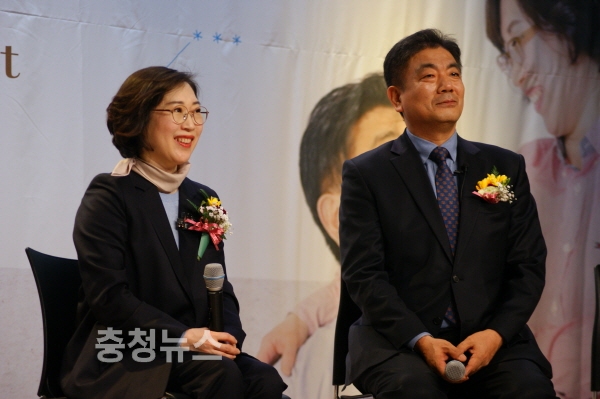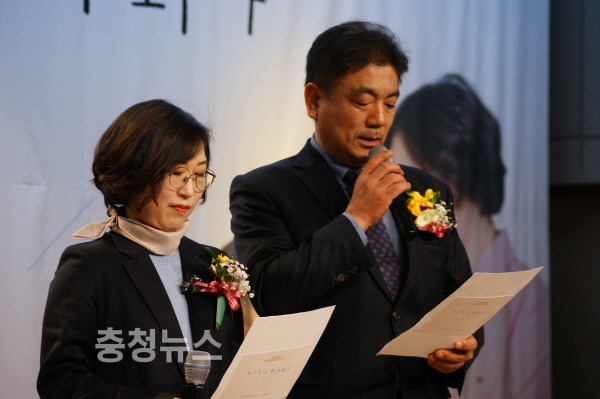 천안시장 출마를 선언한 전종한 천안시의장이 11일 아내 송명숙 씨와 집필한 저서 ‘눈이 녹아 비가 되다’ 출판기념회를 가졌다.