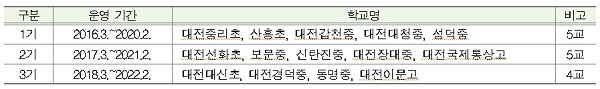 2016년 5개 교(초 2교, 중 3교)를 시작으로, 지난해 5개 교와 올해 4개 교를 추가로 지정, 현재 총 14개 교(초 4, 중 8, 고 2개 교)가 창의인재 씨앗학교로 운영되고 있다.
