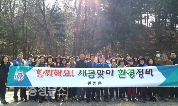 대전 유성구 관평동(동장 홍정환)은 13일 오전 탑립동 버스종점 일원에서 통장협의회 및 한국농업경영인 북대전연합회, 주민센터 직원 등 70여명이 참여한 가운데 새봄맞이 환경정비를 실시했다.