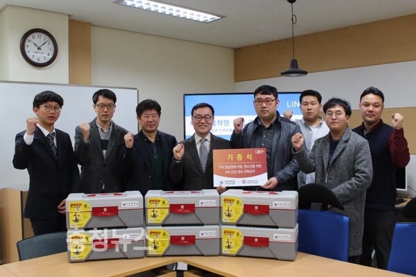 선문대학교(총장 황선조)는 LINC+사업단 스마트융합기술센터(센터장 이동구)와 지역협력센터(센터장 임승휘)가 13일 발달장애 아동 보호기관인 두리사랑주간보호센터에 과학상자 6호를 기증했다고 밝혔다.