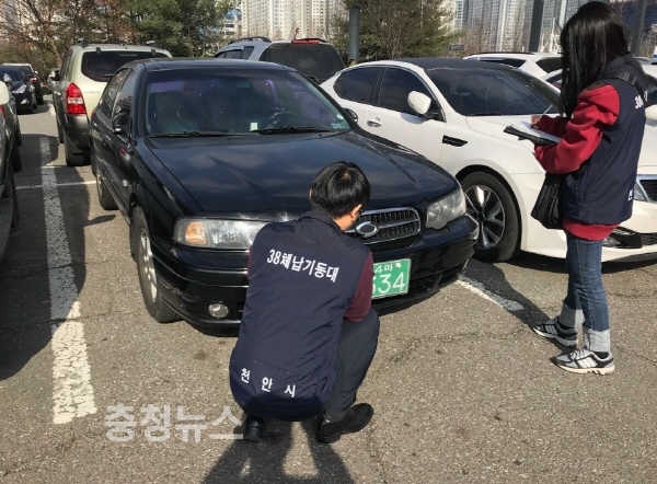 충남 천안시는 지난 13일 자동차 관련 체납액의 징수를 극대화하고 자주재원 확보를 위해 시 전역에 걸쳐 체납차량 번호판 합동영치 활동을 펼쳤다.
