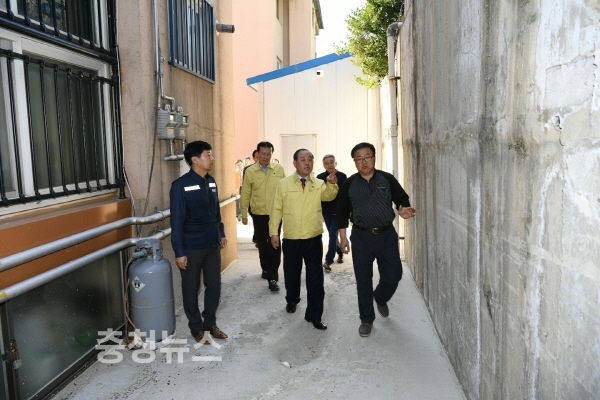 황선봉 군수(사진 오른쪽 첫번째)는 14일 해빙기를 맞아 예산읍 수정빌라를 방문해 안전점검에 나섰다