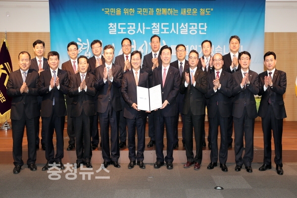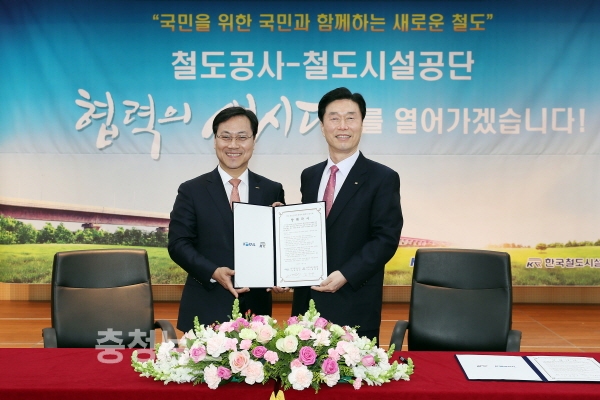 한국철도공사(사장 오영식)와 한국철도시설공단(이사장 김상균)은 15일 철도공동사옥(대전시 동구 소재)에서 한국 철도산업 발전을 위한 상호 협력체계 구축을 주요 내용으로 하는 양해각서(MOU)를 체결했다고 밝혔다.