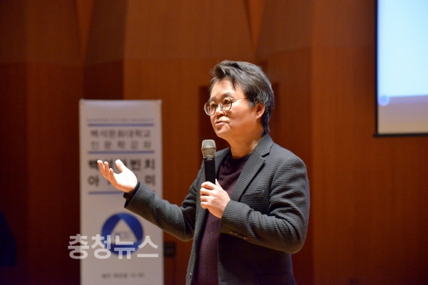 백석문화대학교 인문교육원은 15일 교내 예술대학동 콘서트홀에서 김병후정신건강의학과 김병후 원장을 초청해 ‘나 그리고 너 이해하기’라는 주제로 2018학년도 1학기 첫 백석다빈치아카데미를 개최했다.