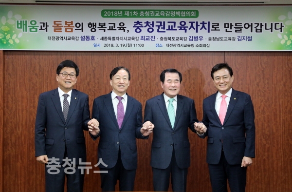 충청권 4개 교육청(대전․세종․충북․충남) 교육감이 19일 대전교육청에서 학교자치 실현을 위한 올해 제1차 정책 협의회를 열었다.