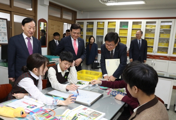 창의인재씨앗학교를 운영 중인 대전갑천중에 방문한 교육감들
