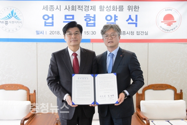 세종시(시장 이춘희)는 20일 청사 내 접견실에서 한국지역난방공사 세종지사(지사장 임태형)와 ‘사회공헌 업무협약(MOU)’을 체결했다.