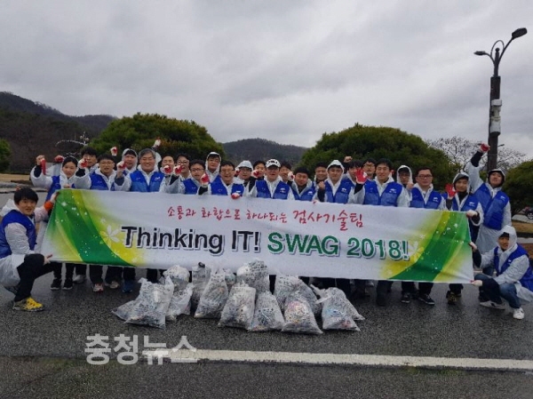 비가 오는 궂은 날씨 속에도 다솜봉사팀은 오후1시부터 5시까지 2팀으로 나눠 신정호수공원 산책로와 잔디광장을 중심으로 각종 쓰레기 등을 수거했다.