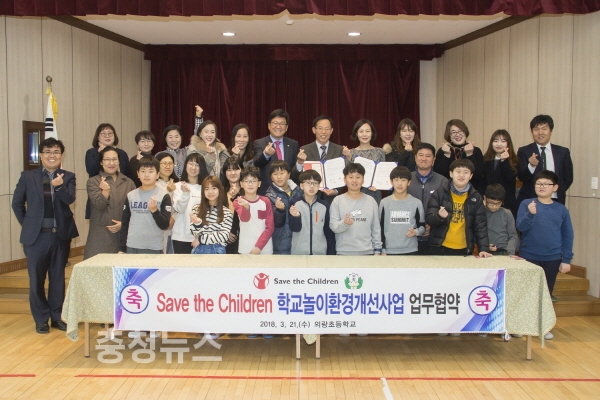 세종시교육청(교육감 최교진)은 21일 의랑초등학교에서 최교진 교육감과 김미숙 세이브더칠드런(이사장 김보노) 중부지부장이 ’학교놀이환경개선사업’ 추진을 위한 업무협약을 체결했다고 밝혔다.