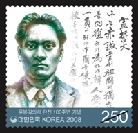 충청체신청(청장 김호)은 독립운동가 윤봉길의사의 탄신 100주년 기념해 ‘윤봉길의사 탄신 100주년 기념’ 우표 1종(135만 장)을 20일부터 전국 우체국에서 판매한다고 밝혔다.