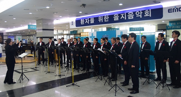 을지대병원은 21일 낮 12시 10분 병원 1층 로비에서 ‘아리랑아버지합창단’을 초청, ‘제 185회 환자를 위한 수요 을지음악회’를 개최했다.