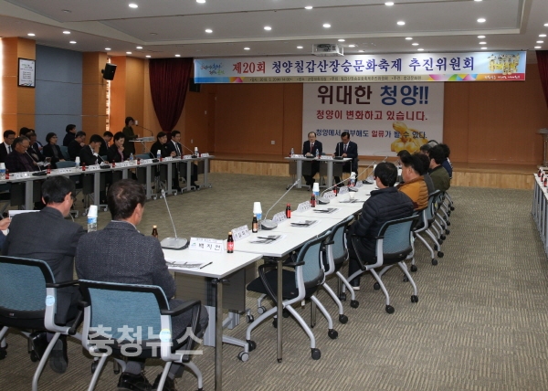 이에 칠갑산장승문화축제추진위원회는 지난 20일 청양군청 대회의실에서 개선·발전 방안을 모색하기 위한 회의를 개최했다. 이날 회의에는 명예위원장인 이석화 청양군수, 위원장인 이진우 문화원장을 비롯한 추진위원 등 50여명이 참석했다.
