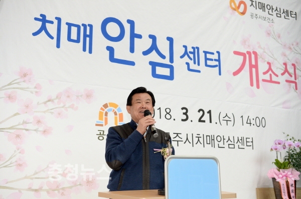 공주시치매안심센터 개소식에서 축사를 하고 있는 오시덕 공주시장