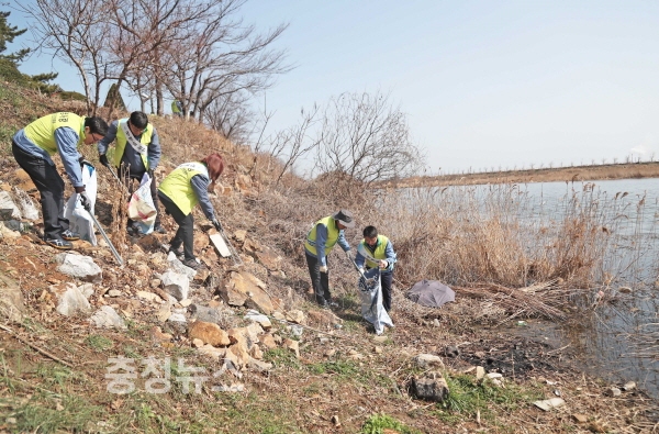 또한 지난 2014년 세계 물의 날 기념행사 당시 석문호 일원에 식재한 벚나무의 가지치기도 진행했다.