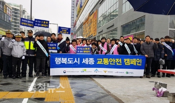 행정중심복합도시건설청(청장 이원재)은 세종특별자치시(시장 이춘희), 한국토지주택공사 세종특별본부(본부장 조성순), 세종경찰서(서장 김철문), 도로교통공단 대전충남지부(지부장 주두환), 한국교통연구원(원장 오재학) 등 6개 기관과 녹색어머니회, 주부모니터단, 모범운전자 등 약 100여명이 참석한 가운데 교통안전 캠페인을 개최했다.