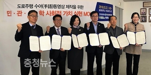 대전배재대ICT융합새일센터(센터장 김정현 배재대 가정교육과 교수)는 22일 배재대에서 도로주행 수어(手語)동영상 제작을 위한 민․관․산․학 사회적가치 실현 업무협약(MOU)을 체결했다.