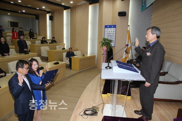 입학식은 이정만 경영행정대학원장을 비롯한 최고경영자과정 공주지구 29명, 부여지구 26명, 가족 및 동문, 관계자 등 100여명이 참석한 가운데 국민의례, 입학허가 선언, 신입생대표 선서, 환영사, 축사, 교가제창 순으로 진행됐다.
