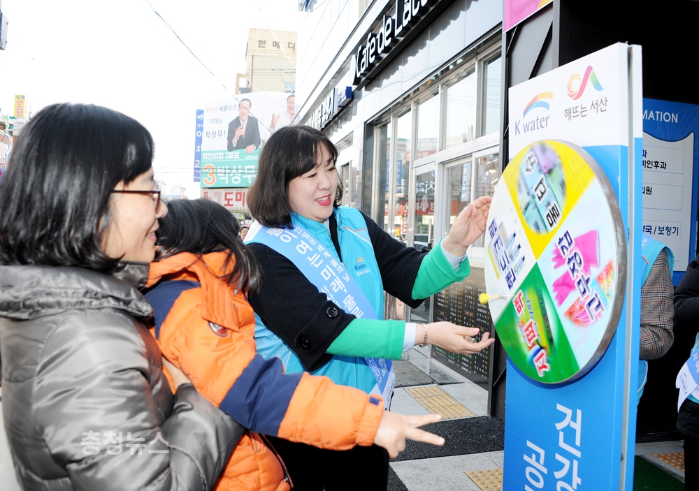 이날 시 직원과 K-water 서산권지사 임직원 등 40여명이 참여한 가운데 병물과 물 절약 홍보물을 시민들에게 나눠주며 물의 중요성, 물 절약 공감대 형성 등에 대한 홍보를 진행했다.