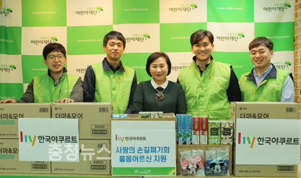 한국야쿠르트 충청지점 임직원은 23일 초록우산 어린이재단 대전종합사회복지관(관장 유미)을 방문해 홀몸어르신을 위한 100만원 상당 생필품 및 자사제품을 기탁했다.
