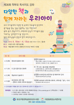 대전 유성구 평생학습원(원장 김가환)은 오는 4월 10일부터 13일까지 4일간 유성도서관에서 ‘다양한 책과 함께 자라는 우리아이’라는 주제로 학부모 독서지도 강좌를 운영한다고 25일 밝혔다.