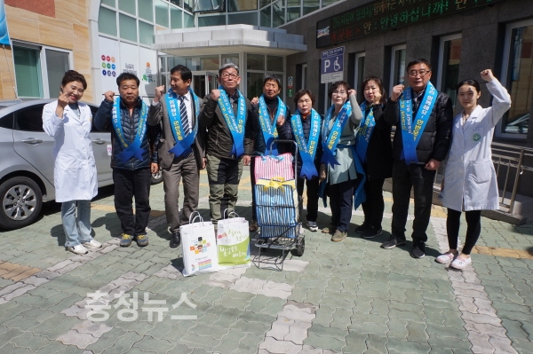 논산시, 어르신 반찬배달 및 안반운동 캠페인 활동 장면