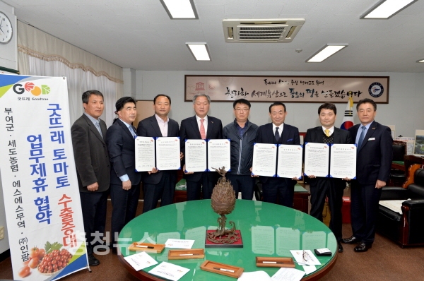 충남 부여군은 지난 26일 군수실에서 굿뜨래 10미(味)인 토마토 수출증대를 위해 글로벌 업무협약을 체결했다.