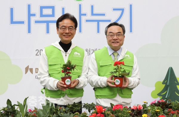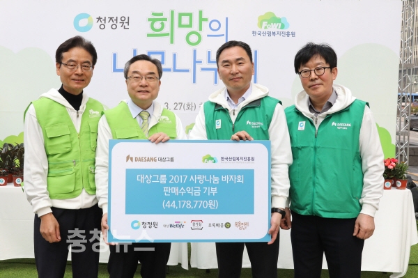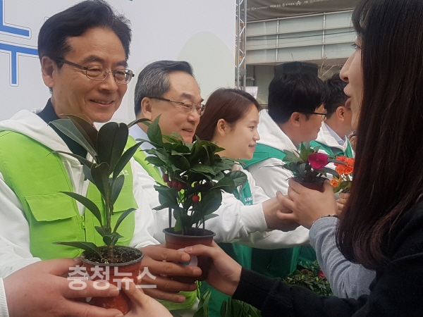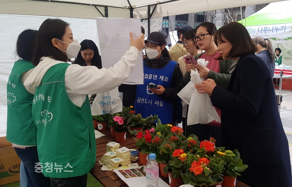 산림청 한국산림복지진흥원이 대상(주)과 공동 주관한 '2018 희망의 나무 나누기' 행사가 27일 서울 중구 청계광장에서 열렸다