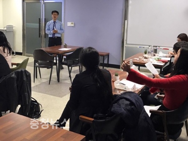 지난 27일 세종시교육청 북부교육지원센터에서 영화 상영에 앞서 담당자가 영화의 배경에 대한 설명을 하는 장면