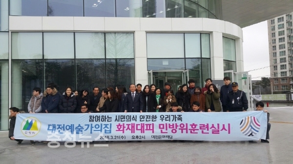 대전문화재단(대표이사 직무대행 이화섭 대전광역시 문화체육관광국장)은 대전예술가의집에서 제406차 민방위날(3.21) 화재 대피 훈련을 했다.