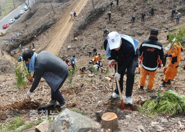 김동일 시장은 “이번 나무심기 행사는 미래의 소중한 가치를, 벅찬 감동을 심는다는 마음으로 한 그루 한그루 우리의 정성을 다하는 뜻깊은 자리였다”며, “더 좋은 미래로 가는 그 약속이 이 산과 자연에 있다는 사실을 우리 모두가 한 마음으로 되새겨 보는 시간이었길 바란다”고 말했다.
