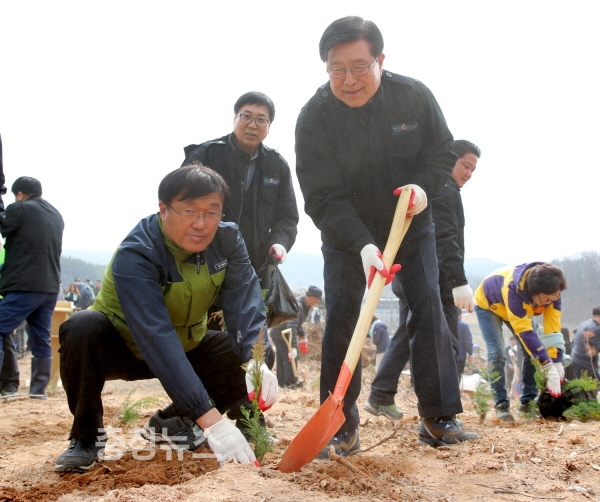 이번 행사는 푸르고 아름다운 태안을 가꿔 지역 이미지를 개선하고 자연을 사랑하는 마음을 고취시키기 위한 것으로, 참여자들은 이날 약 1ha의 임야에 편백나무 2년생 3,000본을 식재했다.